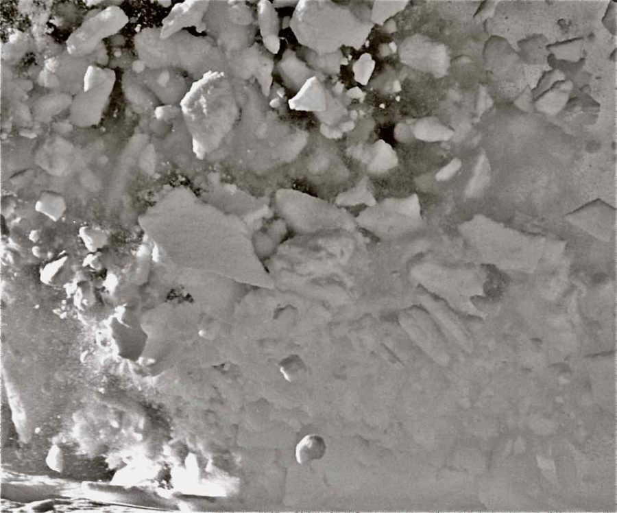 Sun cups off trail make for some interesting patterns and textures in the pack. Best to wait for a full thaw in the pack before working a section like this.