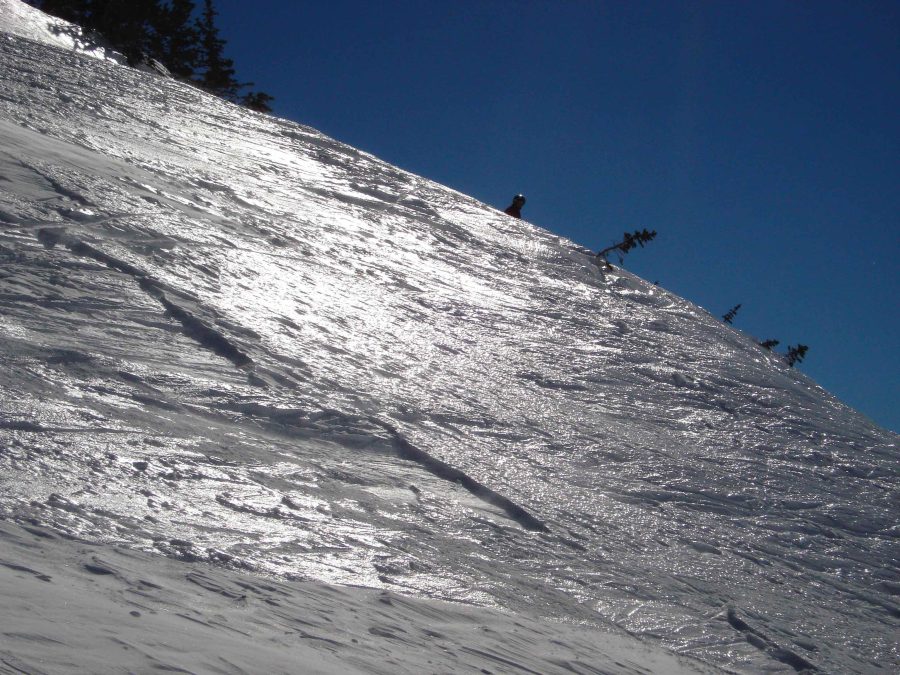 The High North aspects are still holding the smooth and the cold, but the heat is beginning to morph the pack even there.