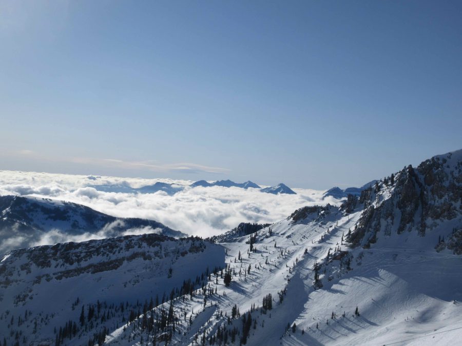 There was an quick blast overnight that delivered a few inches of fresh dry Essence on the dance floor for the morning crew. The Sun was bright, the air was cold, and the snow was fast with no real cushion underfoot, but still gave the turns a bit more buffering. I was still going for the freshly prepared corduroy carpets that were insanely smooth, with just the right amount of nap to make the skis sing as they carved through it. Mineral Basin was offering excellent lines with those previously wind blown lines holding the best shot at some consistent off trail feel. There were a lot of folks out charging the off trail and they were doing a good job of dealing with the old substrate.